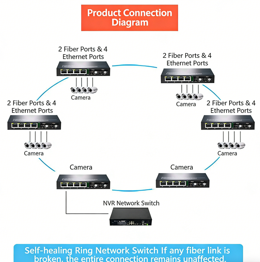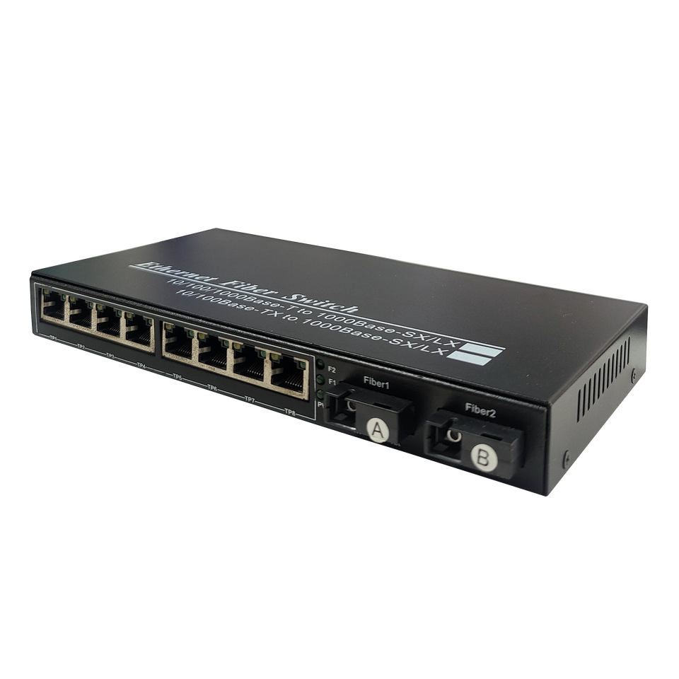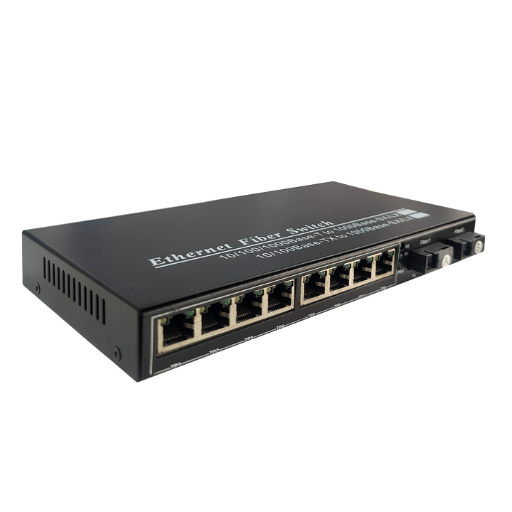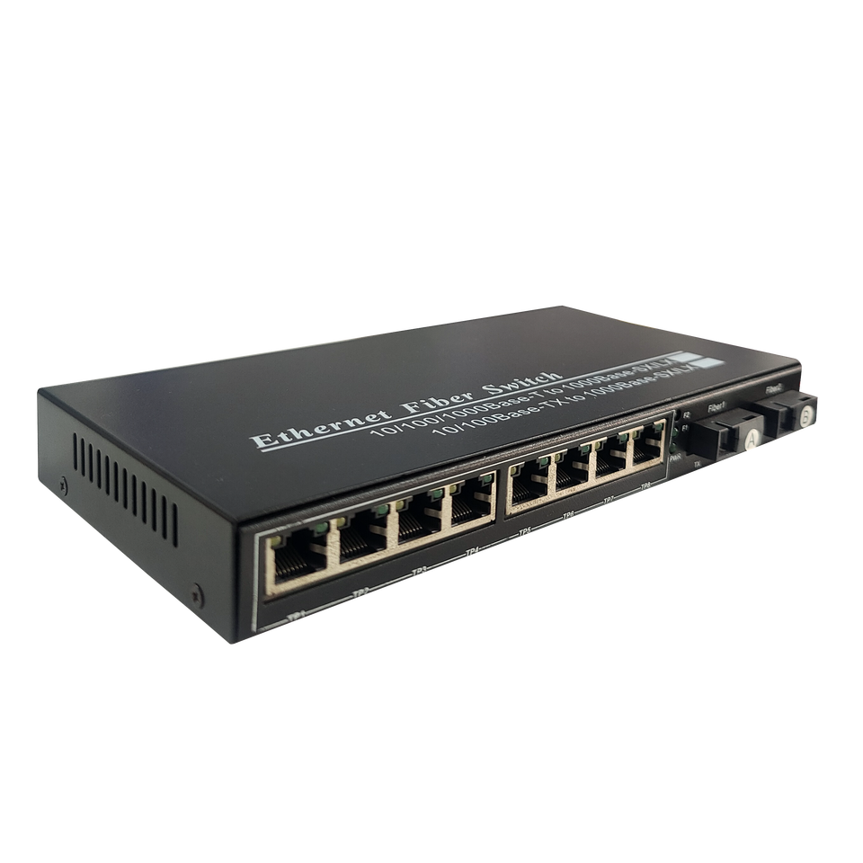 สวิตช์เครือข่ายกิกะบิตขายดีจากโรงงาน 2 พอร์ตไฟเบอร์ 8 พอร์ต RJ45 ตัวแปลงสัญญาณออปติก BIDI 20KM สวิตช์ Poe อีเธอร์เน็ต