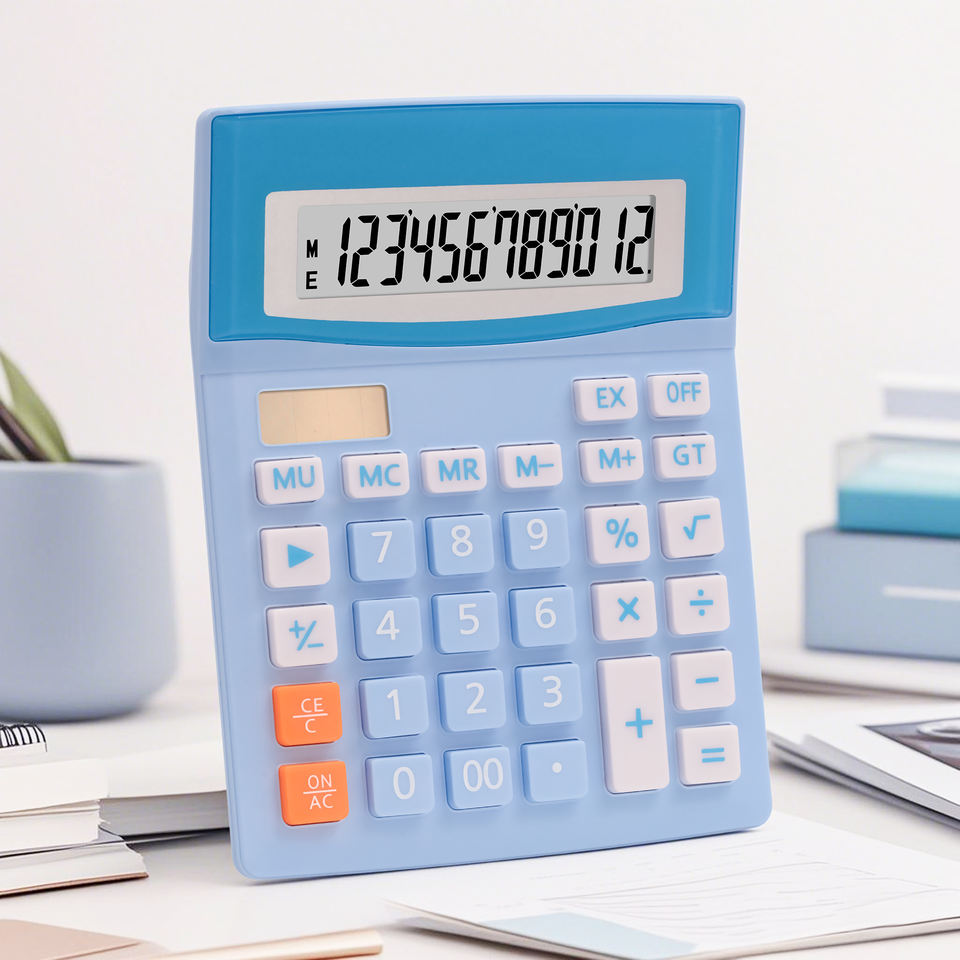เครื่องคิดเลขแบบกลไกไร้เสียงสำหรับโรงเรียนอุปกรณ์สอบทางการเงินใช้พลังงานแบบคู่ตั้งโต๊ะ