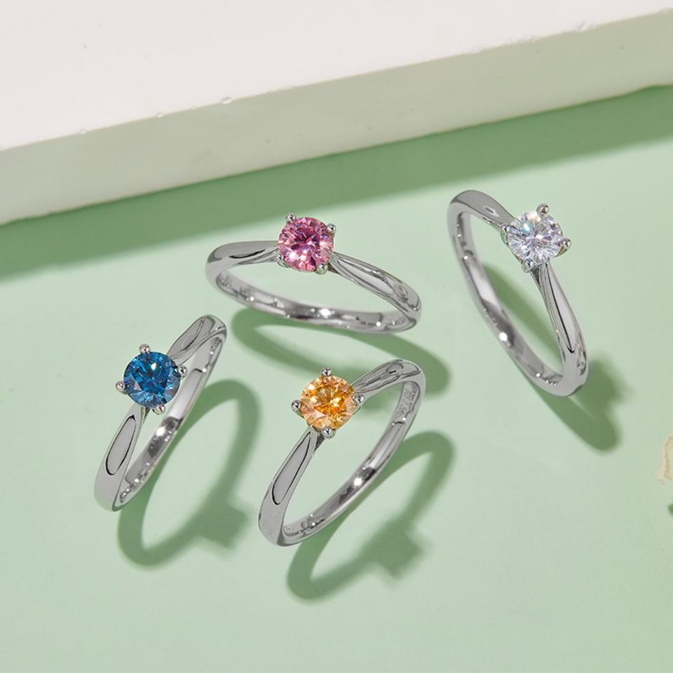 แหวนมอสซาไนต์รุ่นใหม่ขายดีจากโรงงาน 0.5 กะรัต VVS สีชมพู แหวนพลอยมอสซาไนต์ เงินแท้ 925 มีสินค้าในสต็อก