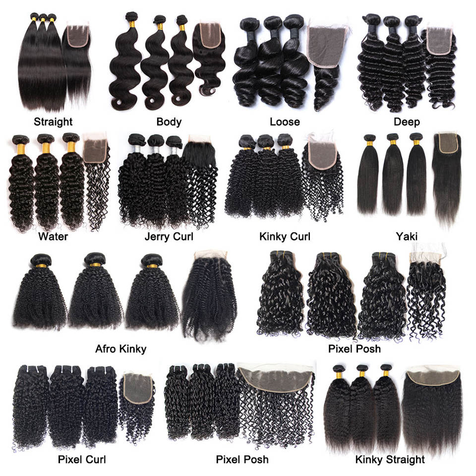 ผมแท้จากอินเดียแบบเรมี่ ผลิตด้วยเครื่องจักร แบบดับเบิ้ลเวฟท์ ทรงแอฟโฟร คิงกี้ เคอร์ลี่ จัดเรียงเกล็ดผม แบบมัด น้ำหนัก 95-100 กรัม
