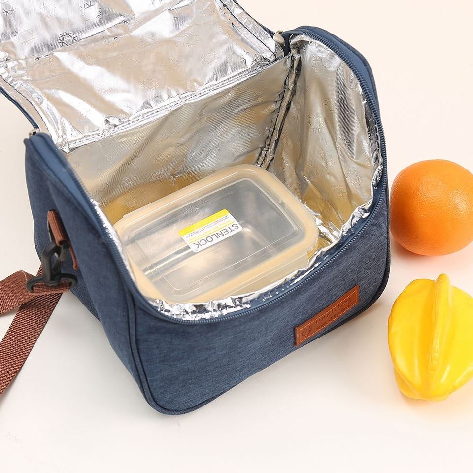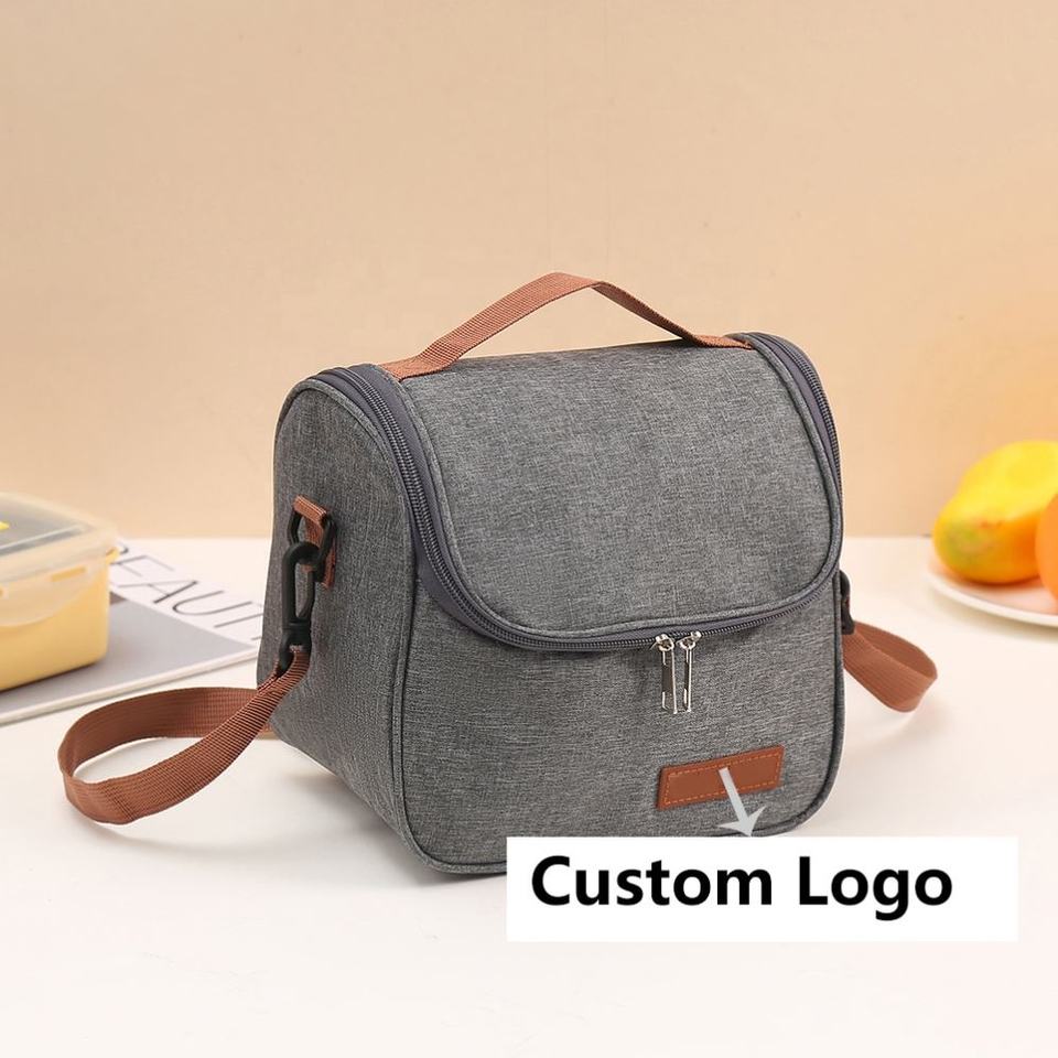 กระเป๋าใส่อาหารกลางวันหุ้มฉนวนกันความร้อนทำจากหนังกระเป๋าใส่อาหารกลางวันแบบพกพาความจุขนาดใหญ่ Logo2024ออกแบบได้ตามต้องการ