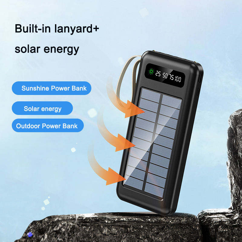 เครื่องชาร์จแบตเตอรี่ลิเธียมโพลิเมอร์10000แบบพกพาความจุสูง/20000มิลลิแอมป์ต่อชั่วโมงธนาคารพลังงานพลังงานแสงอาทิตย์สำหรับเดินทางพร้อมสายเคเบิ้ลและไฟฉาย LED