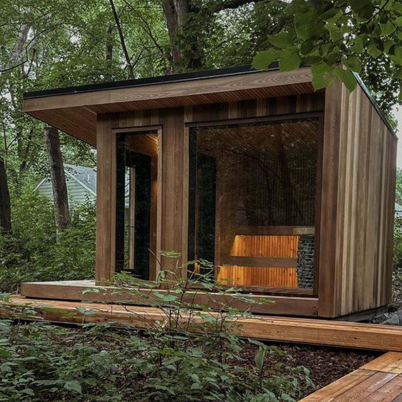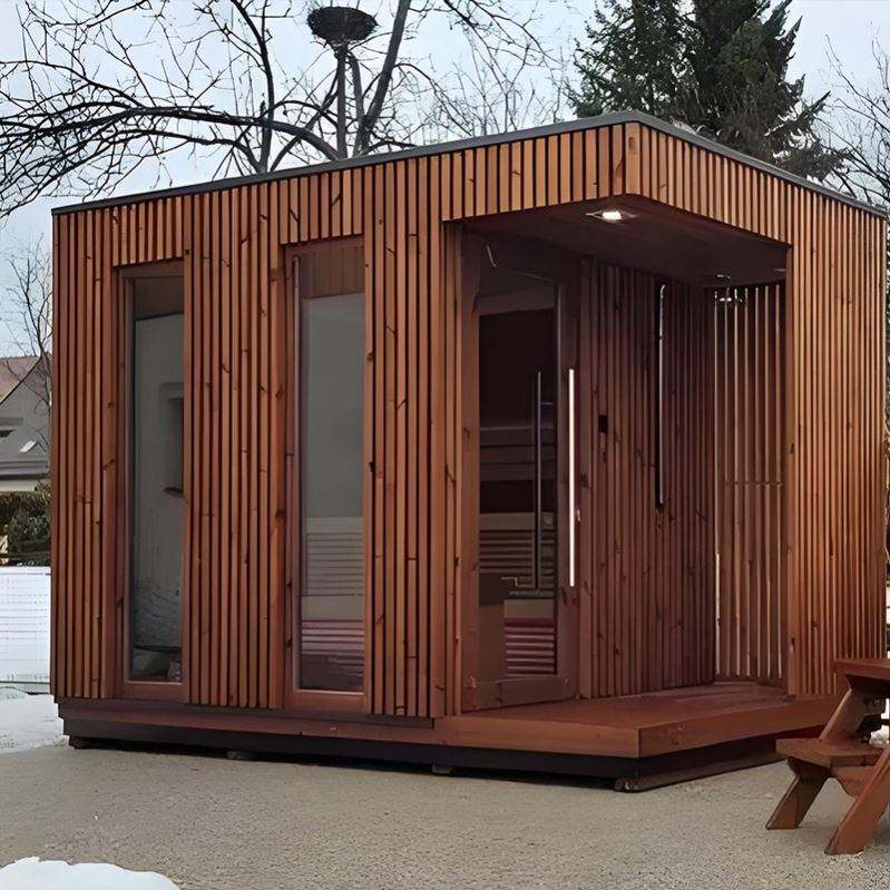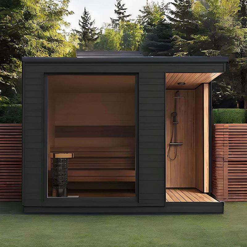 บ้านซาวน่ากลางแจ้งไม้ซีดาร์แดงแท้สุดหรูทันสมัยพร้อมห้องอบไอน้ำและฝักบัวสำหรับวิลล่าจากโรงงาน