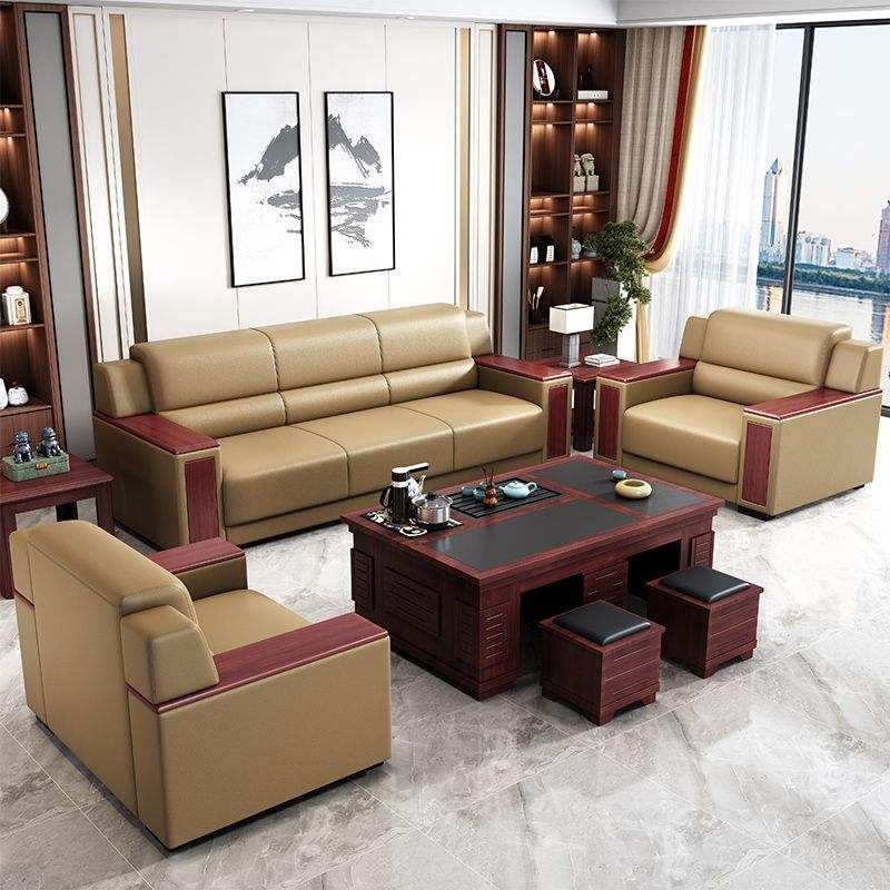 ชุดเฟอร์นิเจอร์สำนักงานสมัยใหม่เชิงพาณิชย์โซฟาหนังผู้บริหารแบบแยกส่วนสำหรับผู้เข้าชมแผนกต้อนรับพื้นที่ห้องรอ