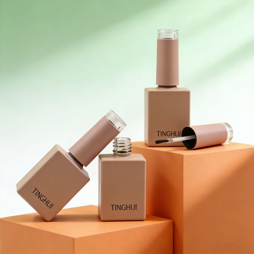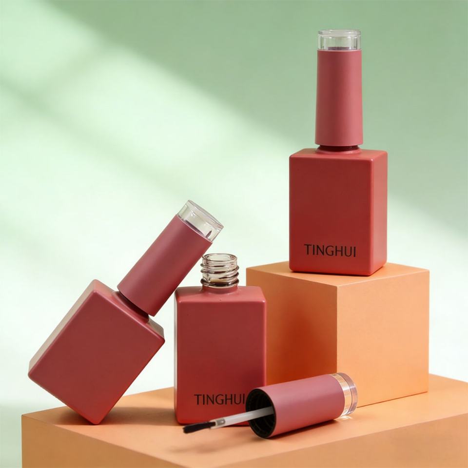 ขวดน้ำยาทาเล็บสีมาการองทรงเหลี่ยม ขนาด 10 มล. พร้อมโลโก้สั่งทำ ขวดแก้วสำหรับเจลทาเล็บ