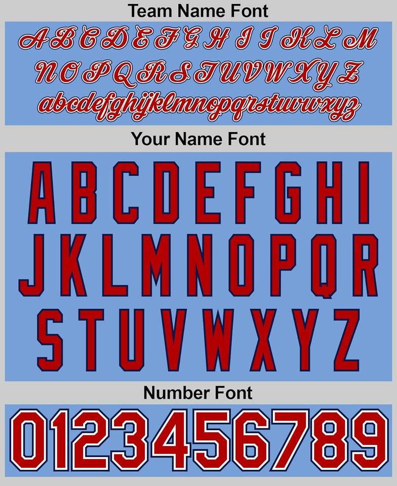 พิมพ์, letter, ไล่ระดับสี, ชื่อผู้เล่น, ชื่อทีม, หมายเลขทีมประเภท รูปแบบ