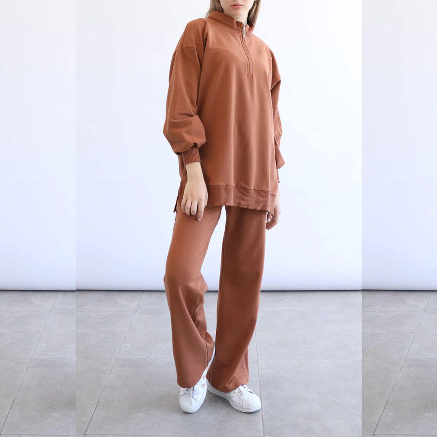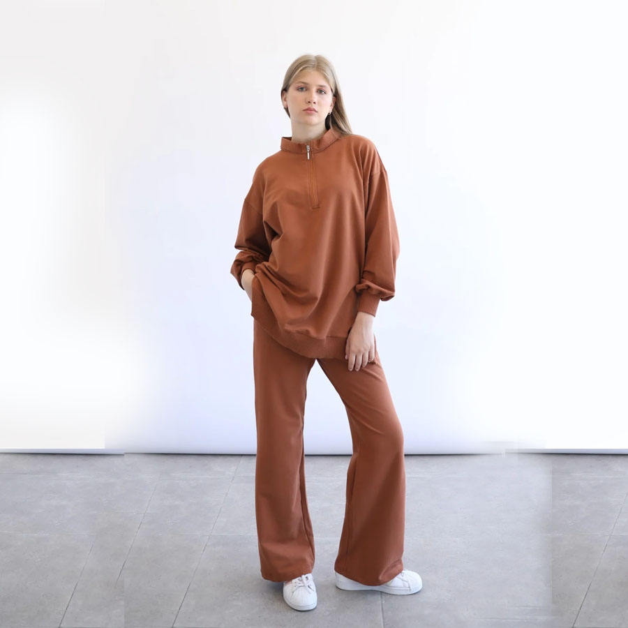 กางเกงสเวตเตอร์ผ้าฟลีซเอวยางยืดสำหรับผู้ชายผู้หญิงกางเกงลำลองเอวยางยืดขายาวผ้าฟลีซสีน้ำตาลทำจากโรงงาน