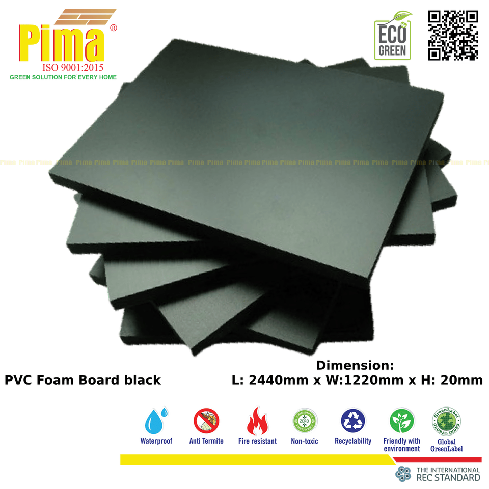 แผ่นเซลูก้าพีวีซีทำจากโรงงานแผ่นโฟม WPC หนา20มม. สีดำความหนาแน่น cm3สำหรับเฟอร์นิเจอร์ครัวเรียบ
