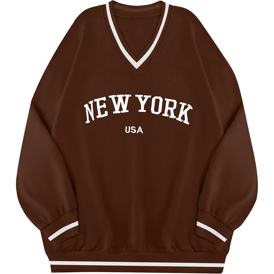 เสื้อสเวตเตอร์แขนยาวผ้าฟลีซเทอร์รี่คอวีของผู้หญิงเสื้อลำลองลายกราฟิกขนาดใหญ่ออกแบบได้ตามต้องการ