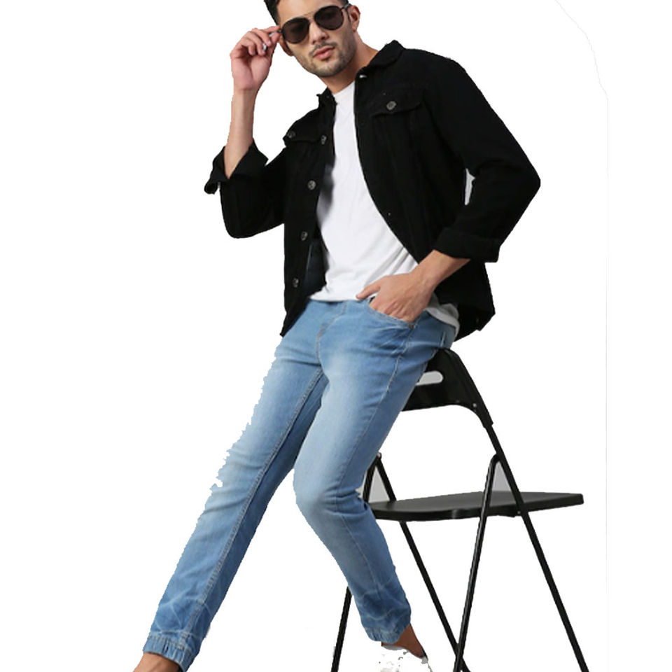แจ็กเก็ตผ้ายีนส์ของผู้ชายแบบสั่งตัดสไตล์วินเทจผ้าฝ้ายระบายอากาศได้ดีปรับแต่งได้