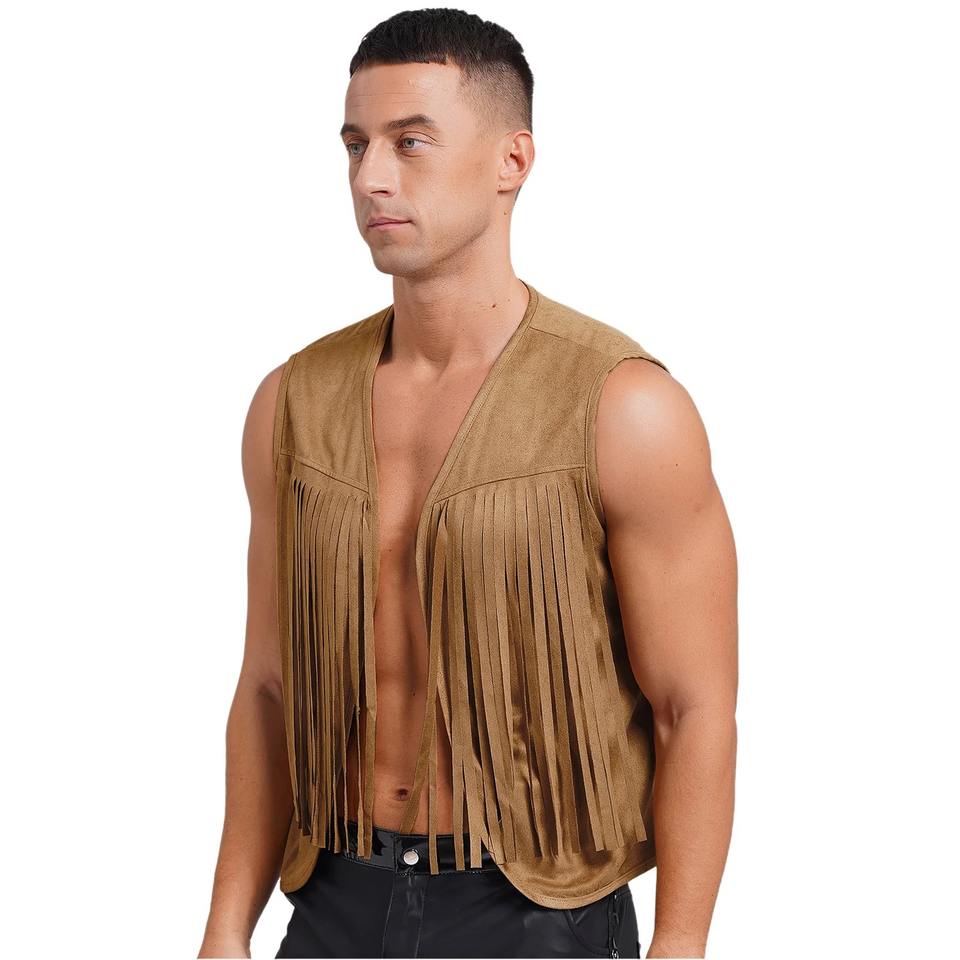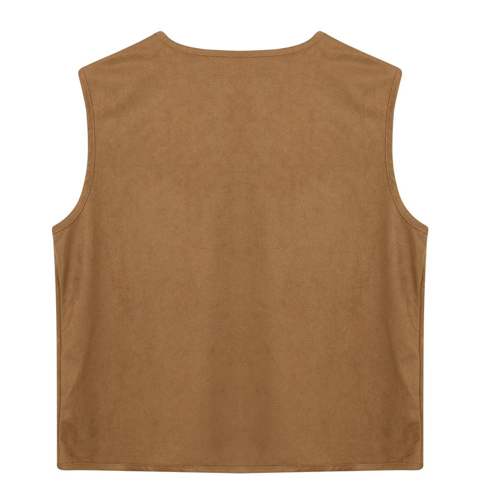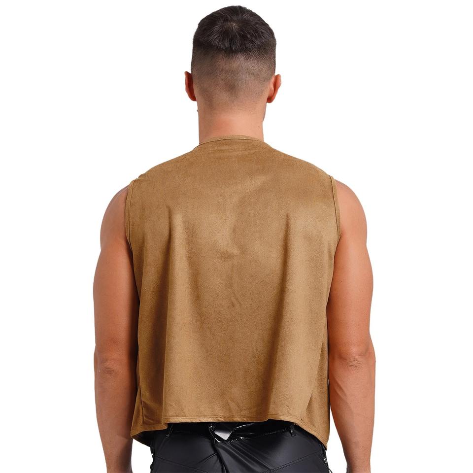 เสื้อกั๊กวินเทจแบบเต็มตัวของผู้ชายเสื้อกั๊กแบบเปิดด้านหน้าทรงหลวมทำจากหนังกลับแท้แท้แท้แบบสั่งทำ