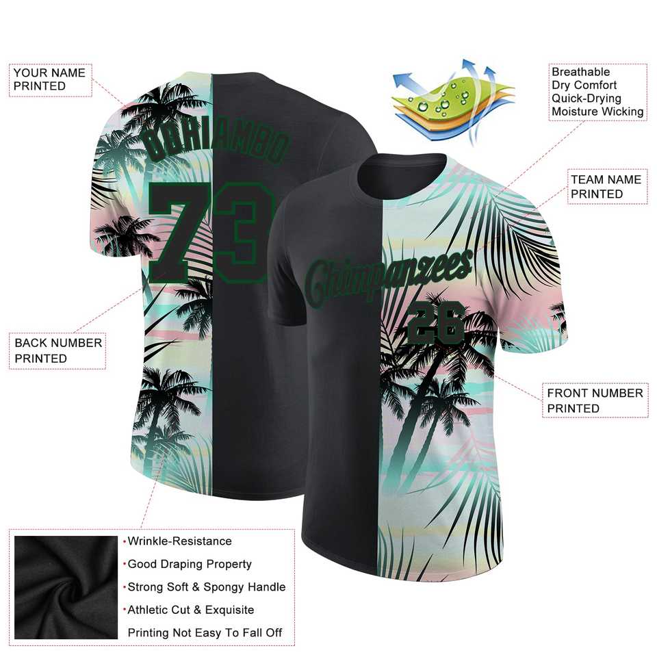 เสื้อยืดแขนสั้นสำหรับทั้งชายและหญิงเสื้อยืดแขนสั้นสำหรับฤดูร้อนพิมพ์ลายต้นไม้ริมชายหาดผ้าโพลีผ้าคอตตอนแห้งเร็วออกแบบได้ตามต้องการ