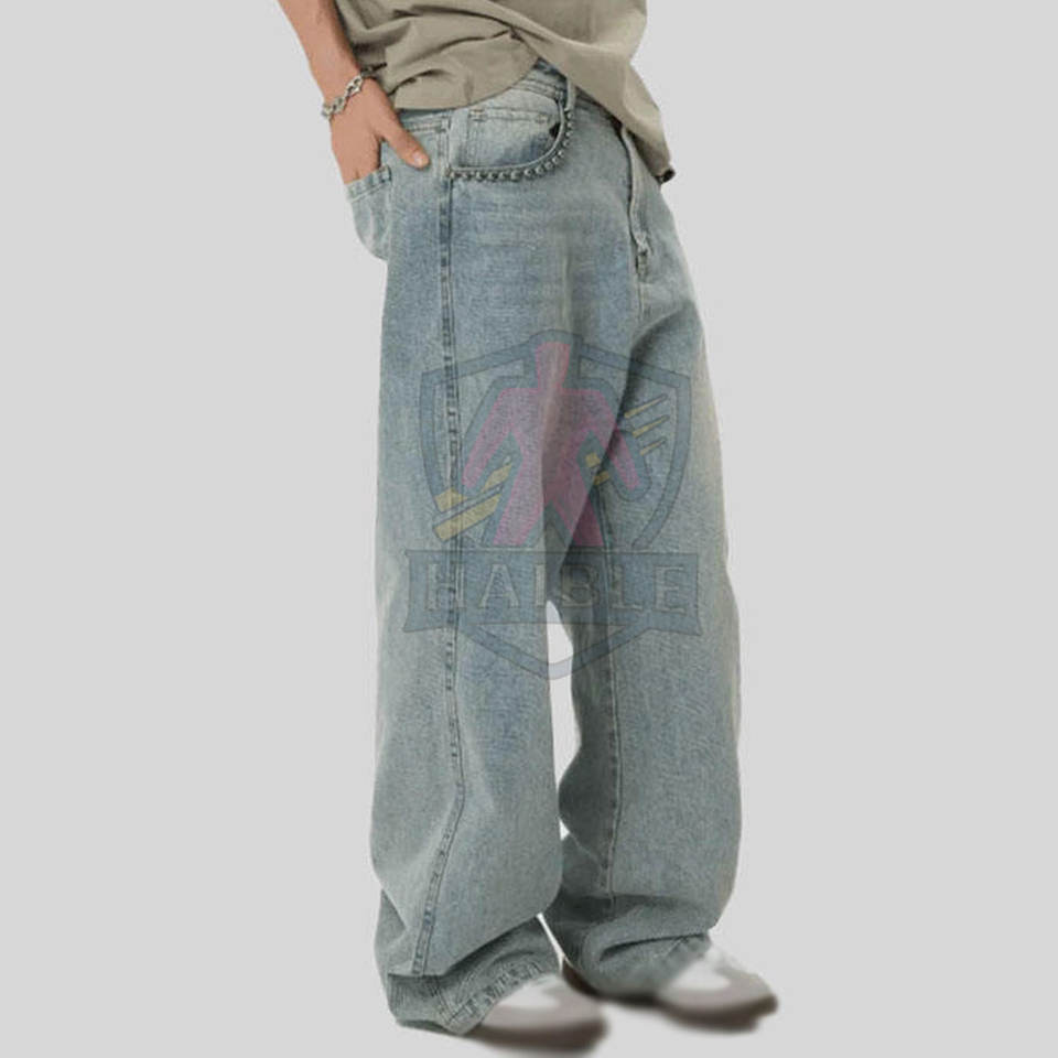 กางเกงยีนส์ทรงหลวมเอวสูงน้ำหนักเบาสำหรับผู้ชาย ผลิตจากโรงงาน ขายดี ผลิตจากผ้าฝ้าย 100% คุณภาพสูง ขายส่ง