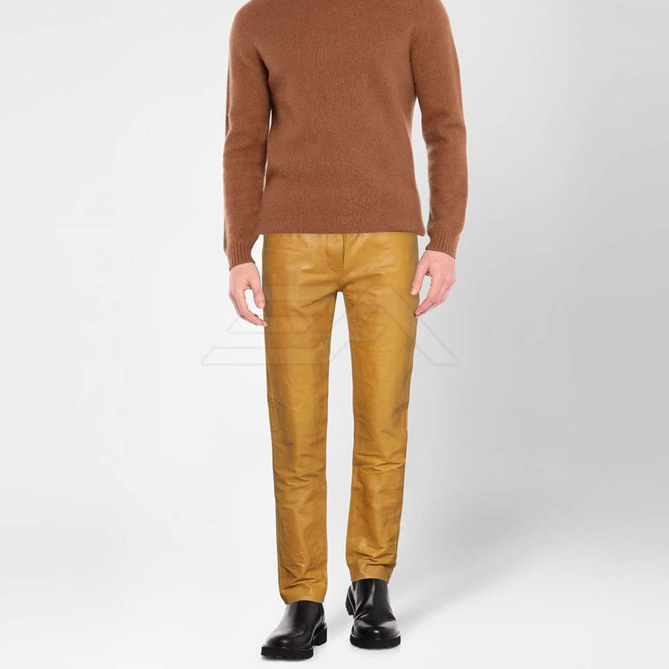 กางเกงหนังลำลองทรงตรงน้ำหนักเบาสำหรับผู้ชาย ผลิตจากโรงงาน ขายดี คุณภาพสูง ขายส่ง ราคาโรงงาน เอวกลาง