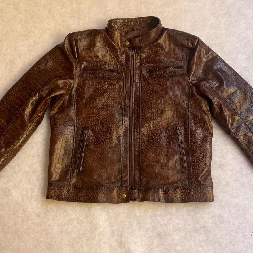 แจ็กเก็ตหนังวัวสำหรับผู้ชายทำจากโรงงานพร้อมปกคอตั้งตกแต่งขนเฟอร์สั่งทำขนาดใส่สบายไซส์พิเศษสำหรับฤดูหนาว