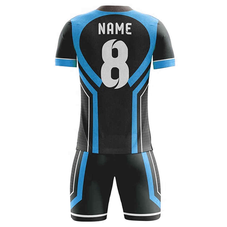 ชุดเสื้อฟุตบอลและกางเกงขาสั้นผู้ชาย ผลิตจากโรงงาน ผ้าโพลีเอสเตอร์ระบายอากาศ ชุดกีฬา พิมพ์โลโก้ตามสั่ง สีพื้น ชุดฟุตบอล