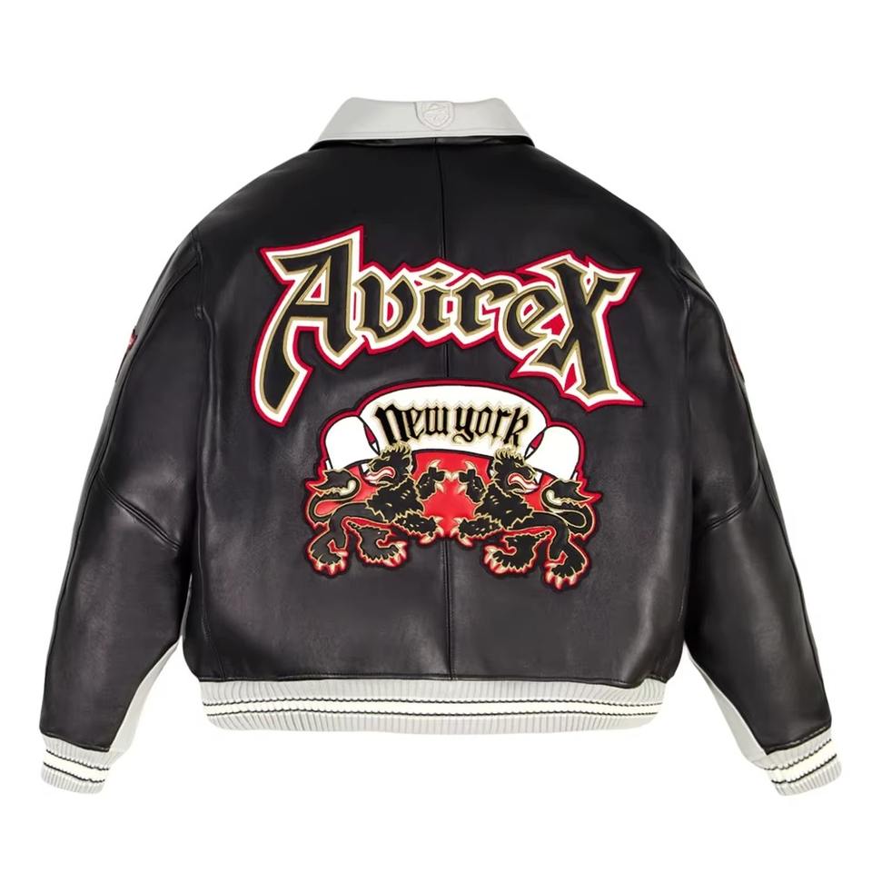 แจ็คเก็ตหนัง Avirex คุณภาพดั้งเดิม ผลิตจากโรงงาน รุ่นพรีเมียม ปี 2026 ไซส์พลัสสำหรับผู้ชาย คอตั้ง โลโก้ด้านหน้า ดีไซน์เย็บลายตาราง เหมาะสำหรับฤดูร้อน