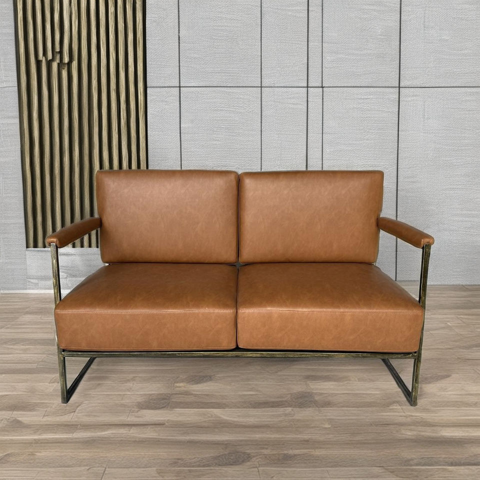 โซฟาหนัง PU แบบประกอบสำเร็จรูป พร้อมเก้าอี้มีโครงเหล็กและเบาะรองนั่งรูปทรงสี่เหลี่ยม 2 ชิ้น สำหรับห้องนั่งเล่นหรือโรงแรม