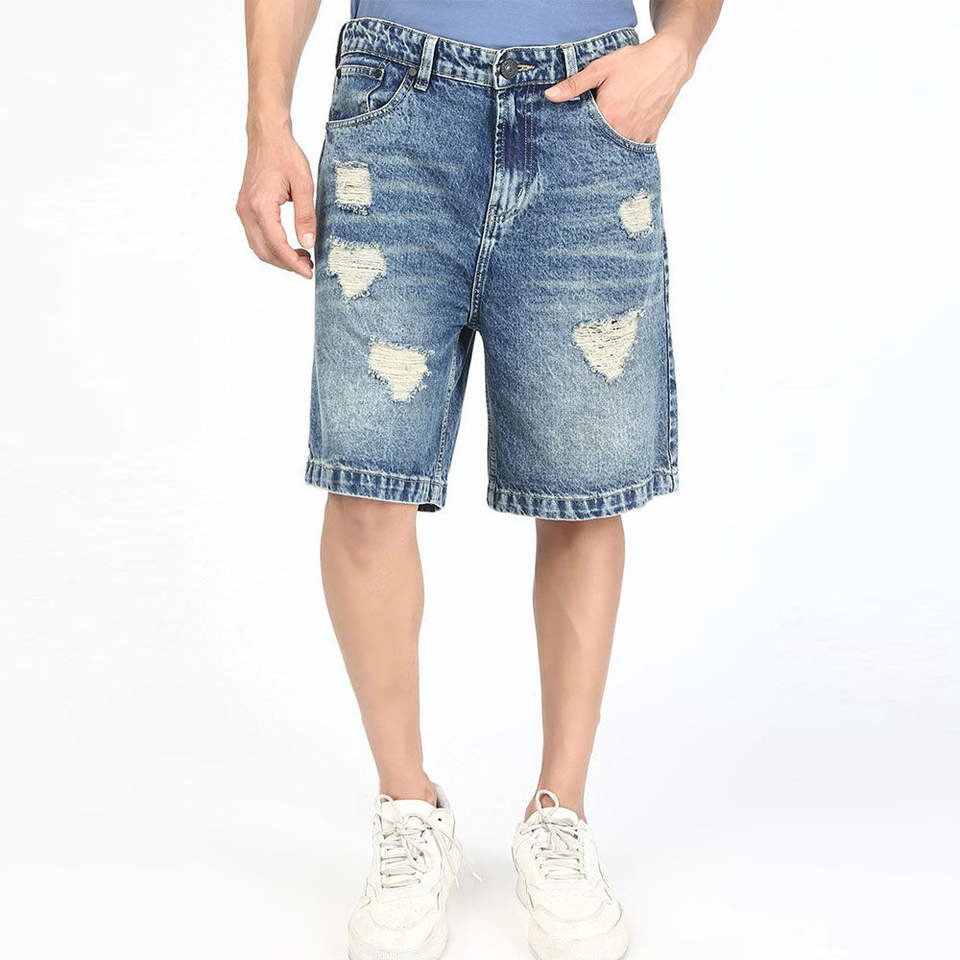 กางเกงขาสั้นผ้ายีนส์สำหรับผู้ชายกางเกงขาสั้นผ้าเดนิมเป็นมิตรกับสิ่งแวดล้อมสวมใส่สบาย