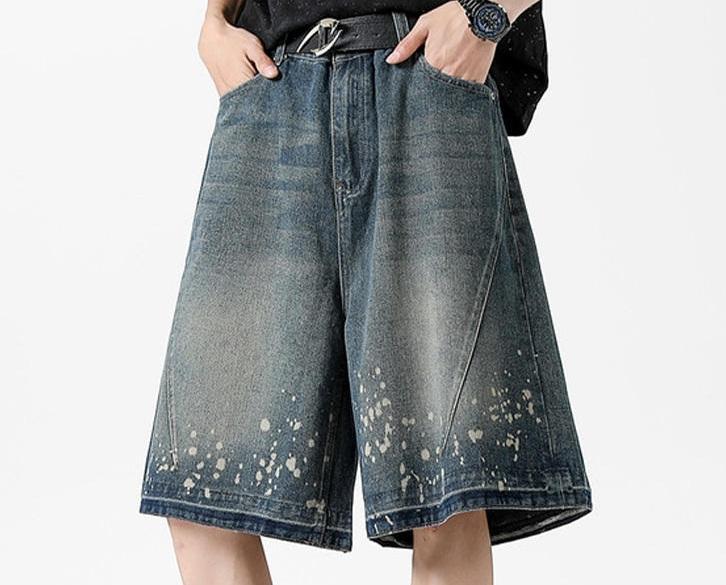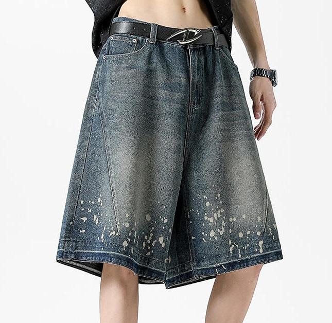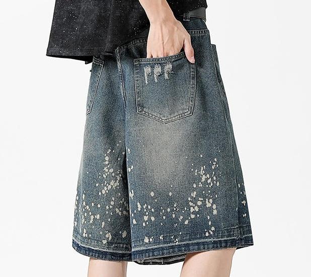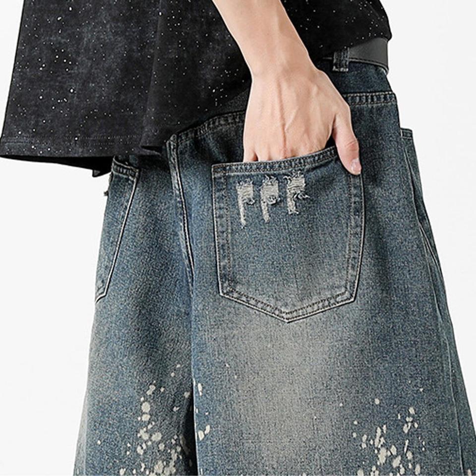 Factory Made Wholesale Price High Street Vintage Washed Ripped Denim Shorts Men's Loose Straight Denim Shorts for Men 2025