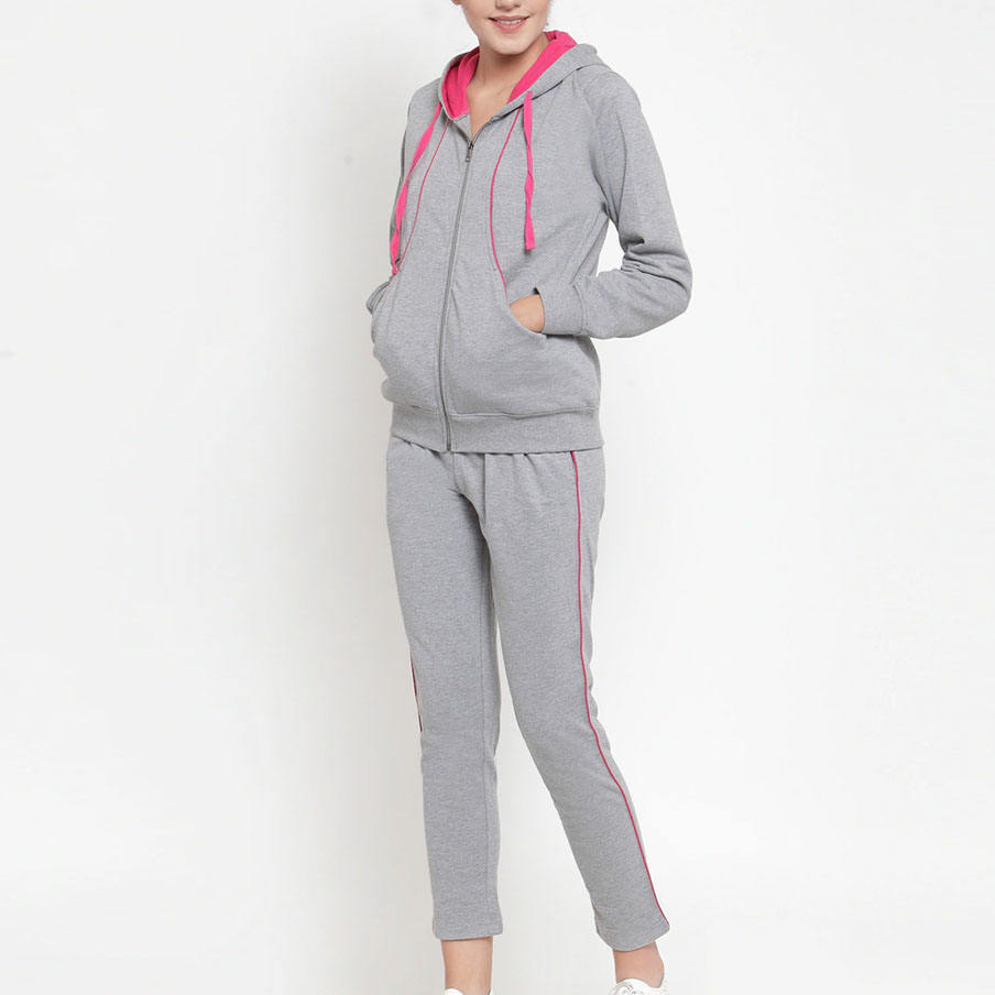 ชุด2ชิ้นแบบมีซิปสำหรับผู้หญิงชุดวอร์มแขนยาวระบายอากาศได้ดี
