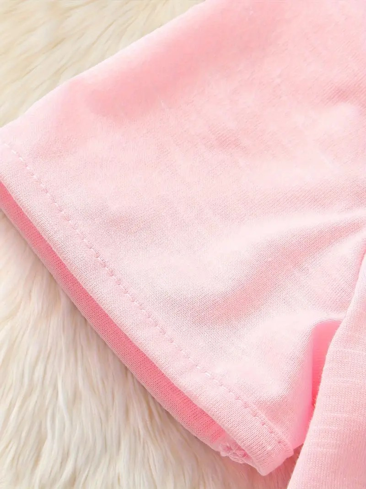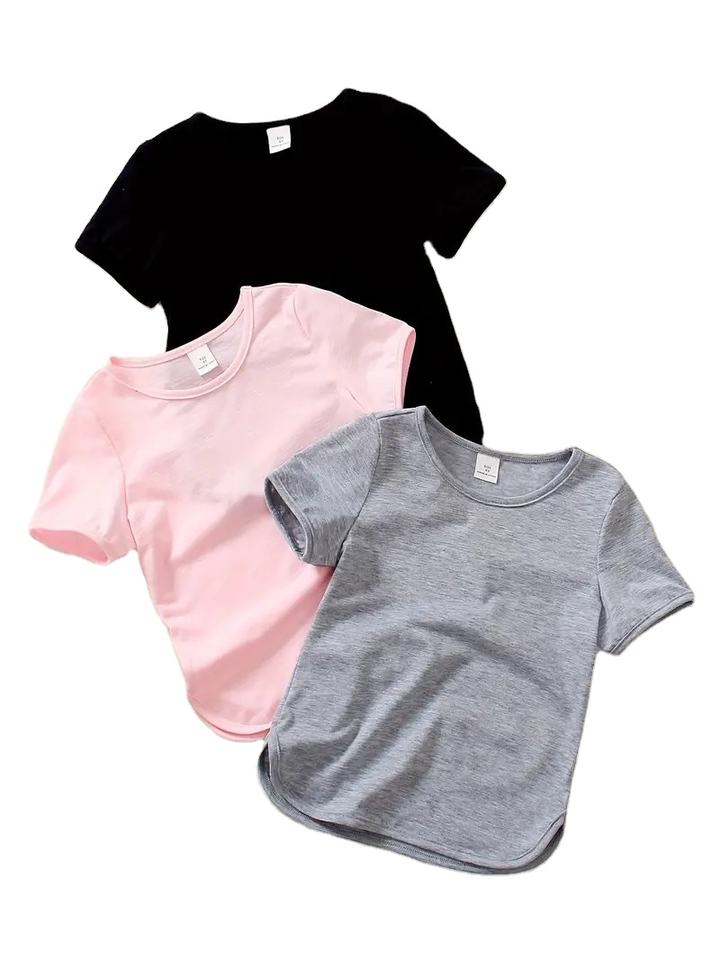 เสื้อยืดลำลองเด็กผู้หญิงตัวเล็กแขนสั้นผ้าคอตตอน100% ปรับแต่งได้เสื้อลำลองสามชิ้นผลิตจากโรงงาน
