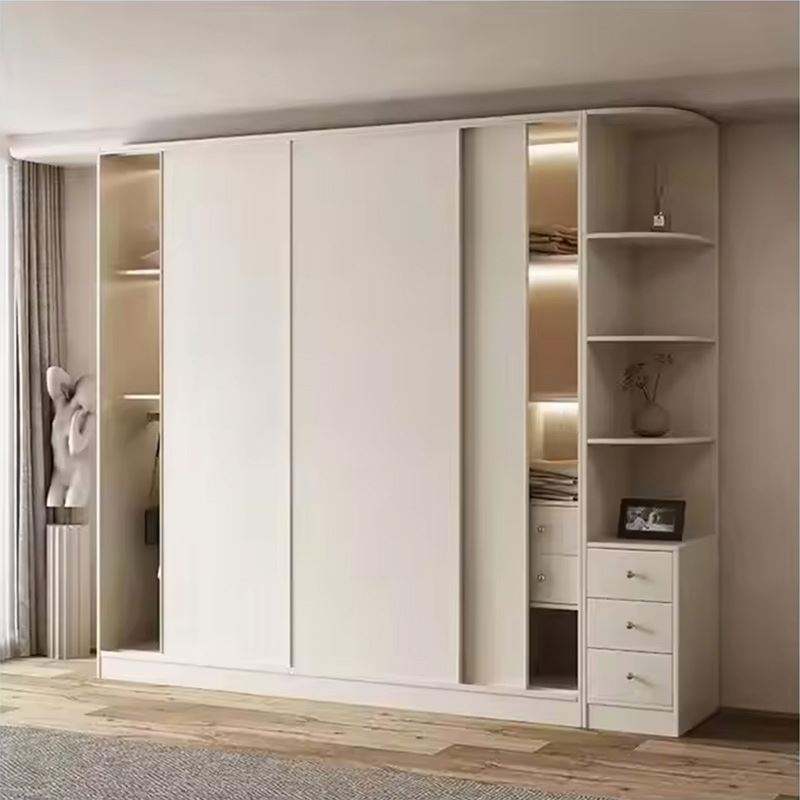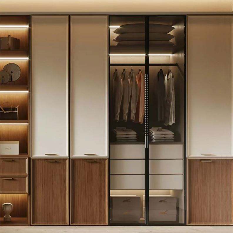 ตู้เสื้อผ้าห้องนอนแบบโมเดิร์นเคลือบแลคเกอร์ลายไม้ ผลิตโดยโรงงานโดยตรง ออกแบบตามสั่ง พร้อมไฟ LED