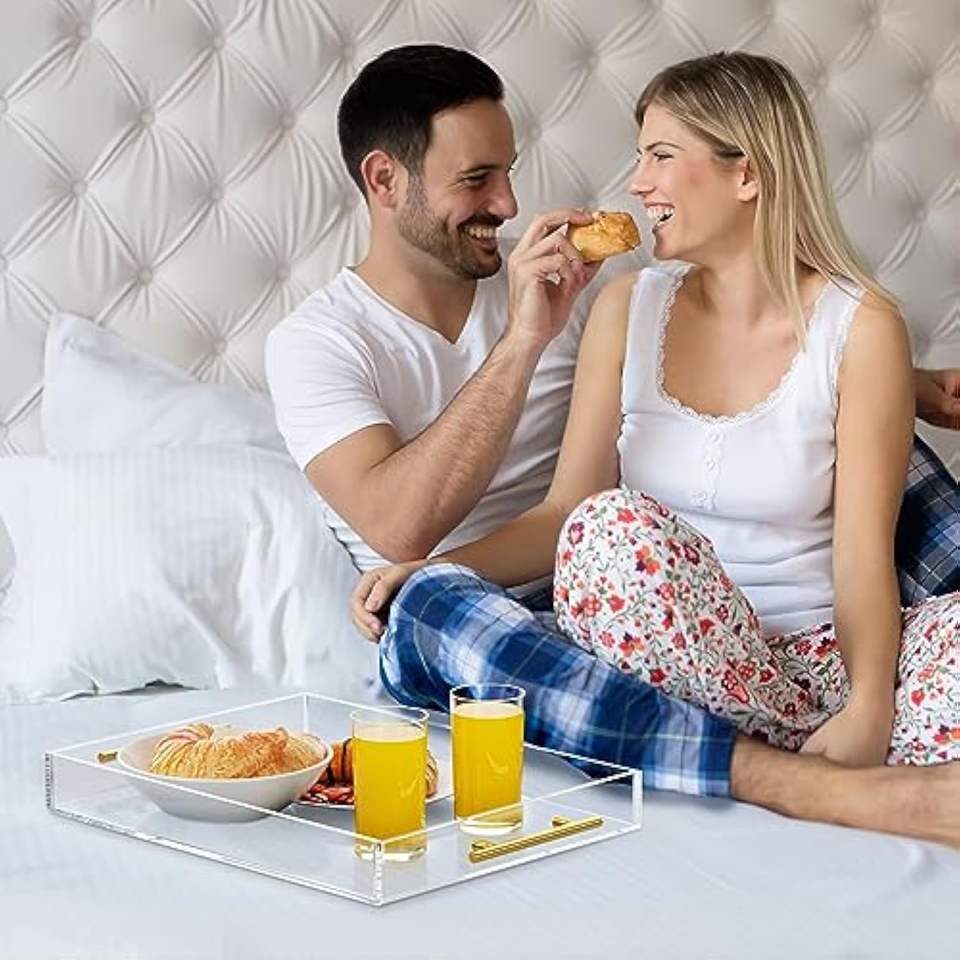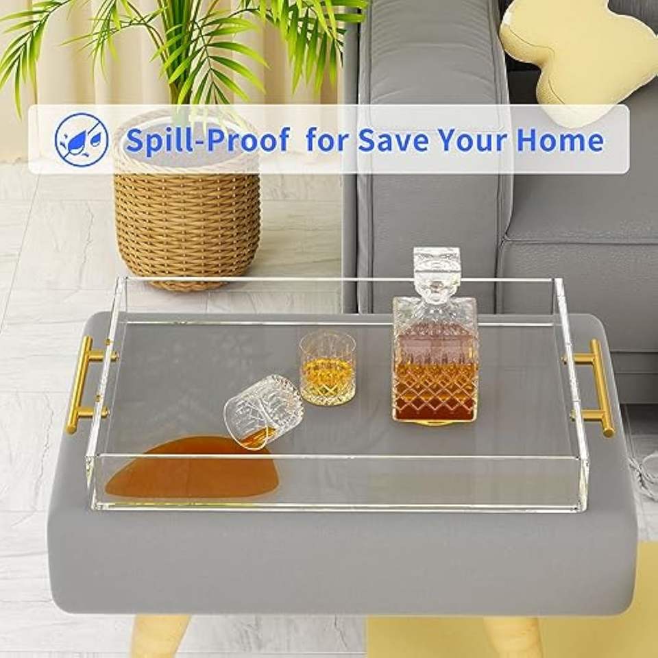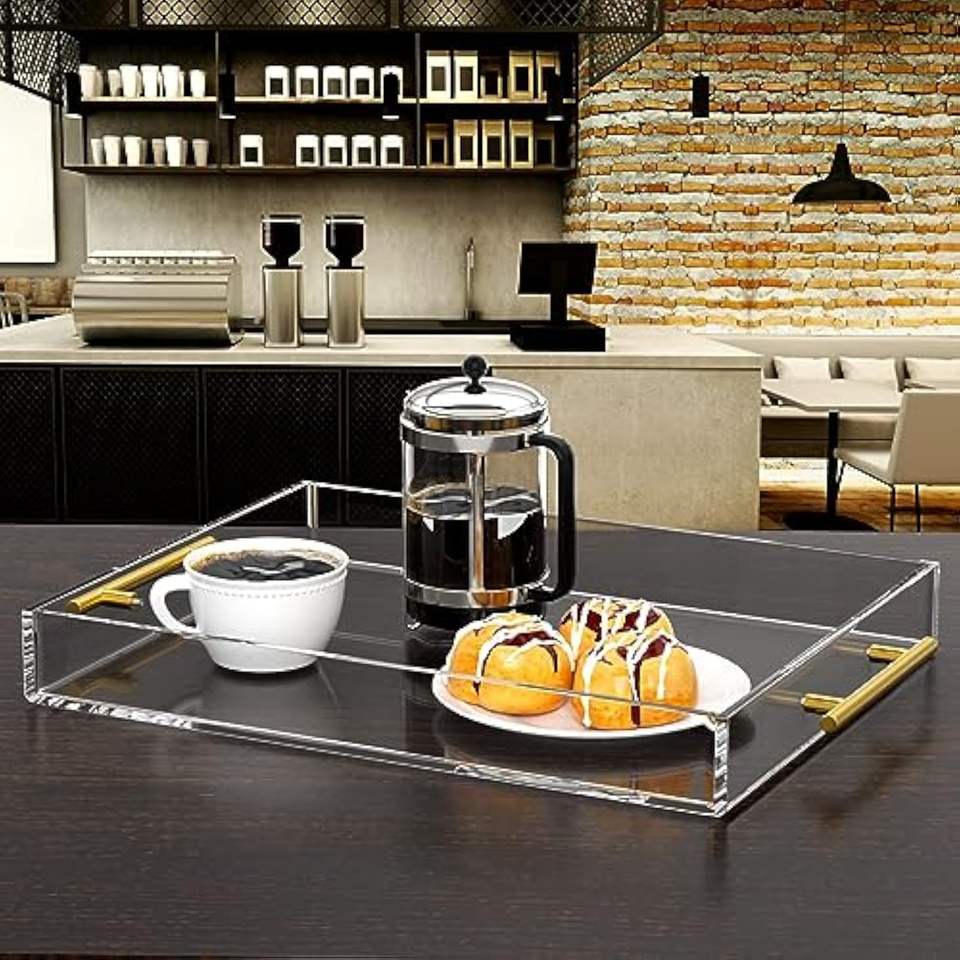 ถาดอะคริลิคใสเสิร์ฟพร้อมด้ามจับสีทองผลิตจากโรงงาน