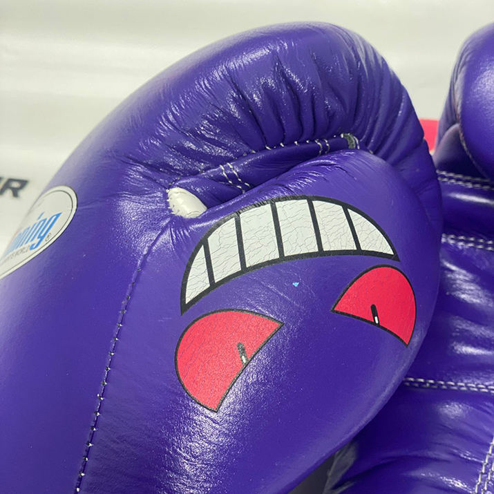 ชุดชกมวยสีม่วงพิมพ์ลาย Genger ยอดนิยมสำหรับผู้ใหญ่ ผลิตจากโรงงาน พร้อมถุงมือแบบสั่งทำพิเศษ ที่ครอบศีรษะ และอุปกรณ์ป้องกันขาหนีบ