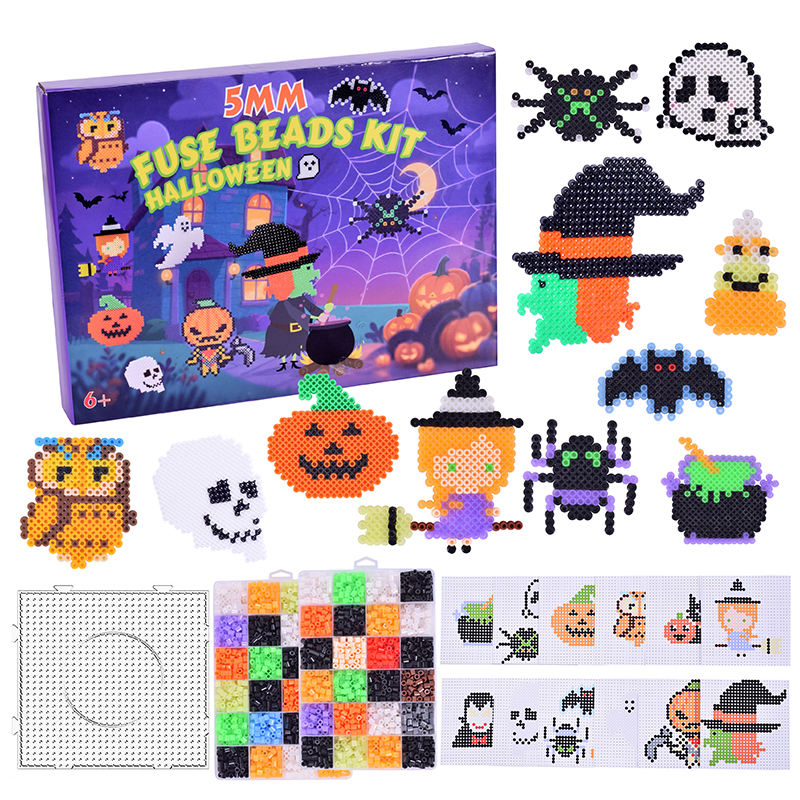 โรงงานผลิตวัสดุ EVA ชุดลูกปัดร้อยเชือกหลากสี 5 มม. 4800 ชิ้น พร้อม 12 แบบ สำหรับสไตล์ฮาโลวีน เหมาะสำหรับเด็กอายุ 5 ถึง 7 ปี