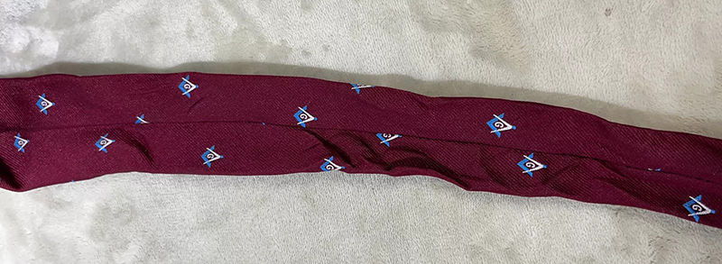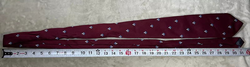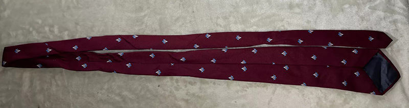 เนคไทผ้าโพลีเอสเตอร์สำหรับผู้ชายพิมพ์ลายโลโก้โรงพยาบาลสีขาวเบอร์กันดีสีแดง