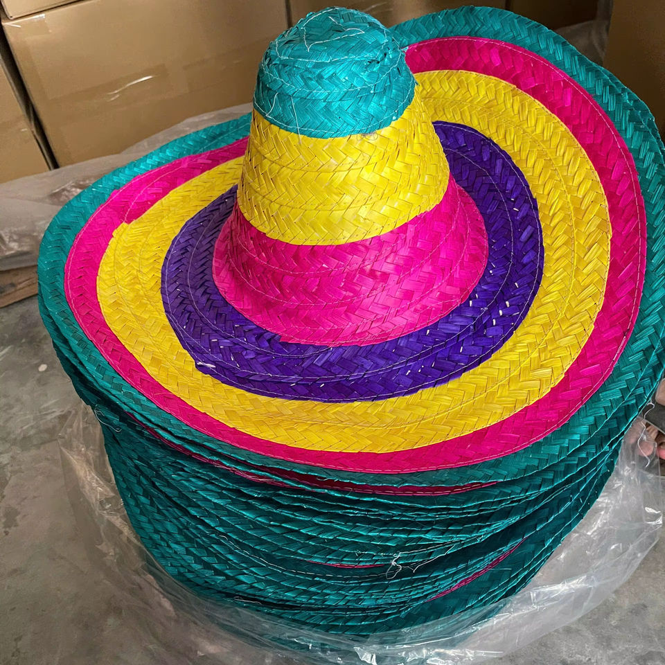 Factory Mexican Multicolored Sombrero straw hats With Pom Pom Edges Fancy Dress Accessory Hat Straw Holiday