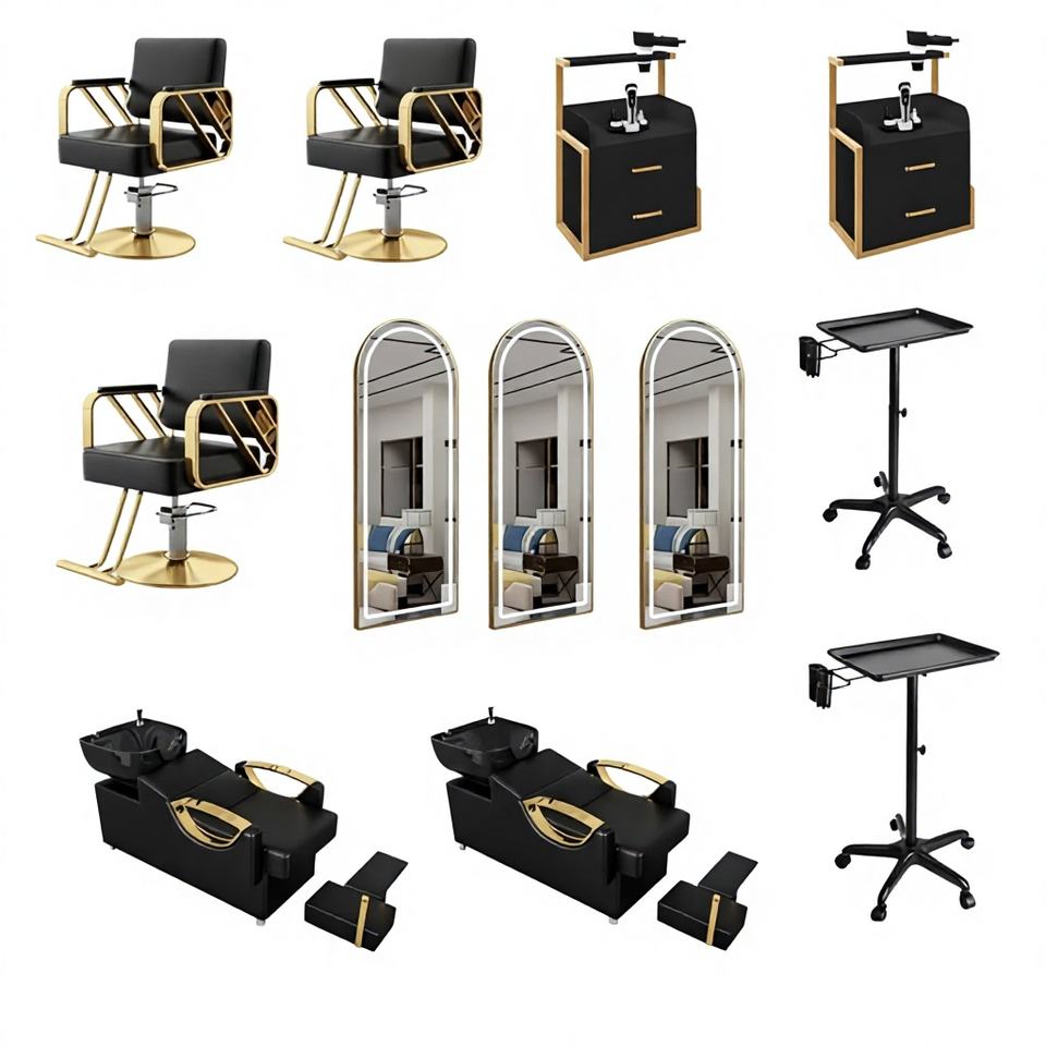 ชุดเก้าอี้ตัดผมสำหรับร้านเสริมสวย ทำจากหนังสังเคราะห์ทันสมัย เป็นมิตรกับสิ่งแวดล้อม