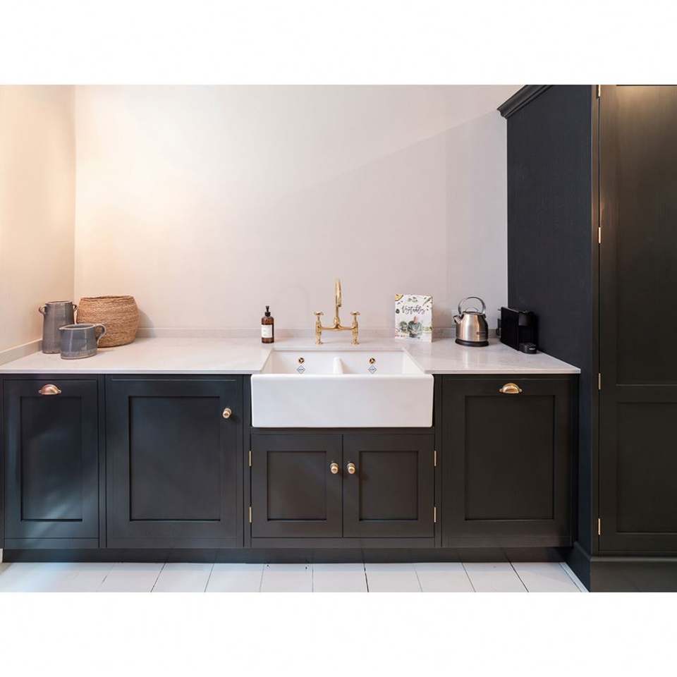 ตู้ครัวดีไซน์ทันสมัยสีดำ ผลิตจากไม้จริง พร้อมอ่างล้างจาน
