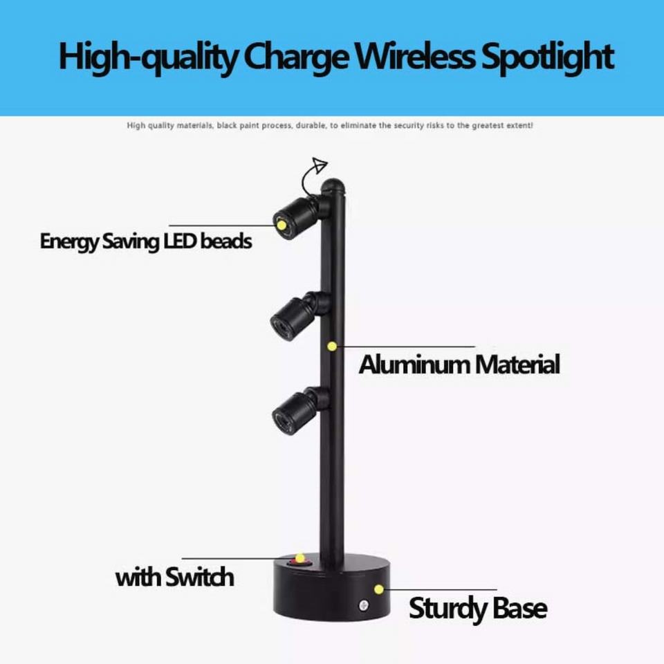 ไฟสปอตไลท์แบบชาร์จได้สำหรับตู้โชว์เครื่องประดับ หลายหัว LED กำลังไฟ 2W3W5W เหมาะสำหรับตู้โชว์ นิทรรศการ พิพิธภัณฑ์ งานฝีมือ