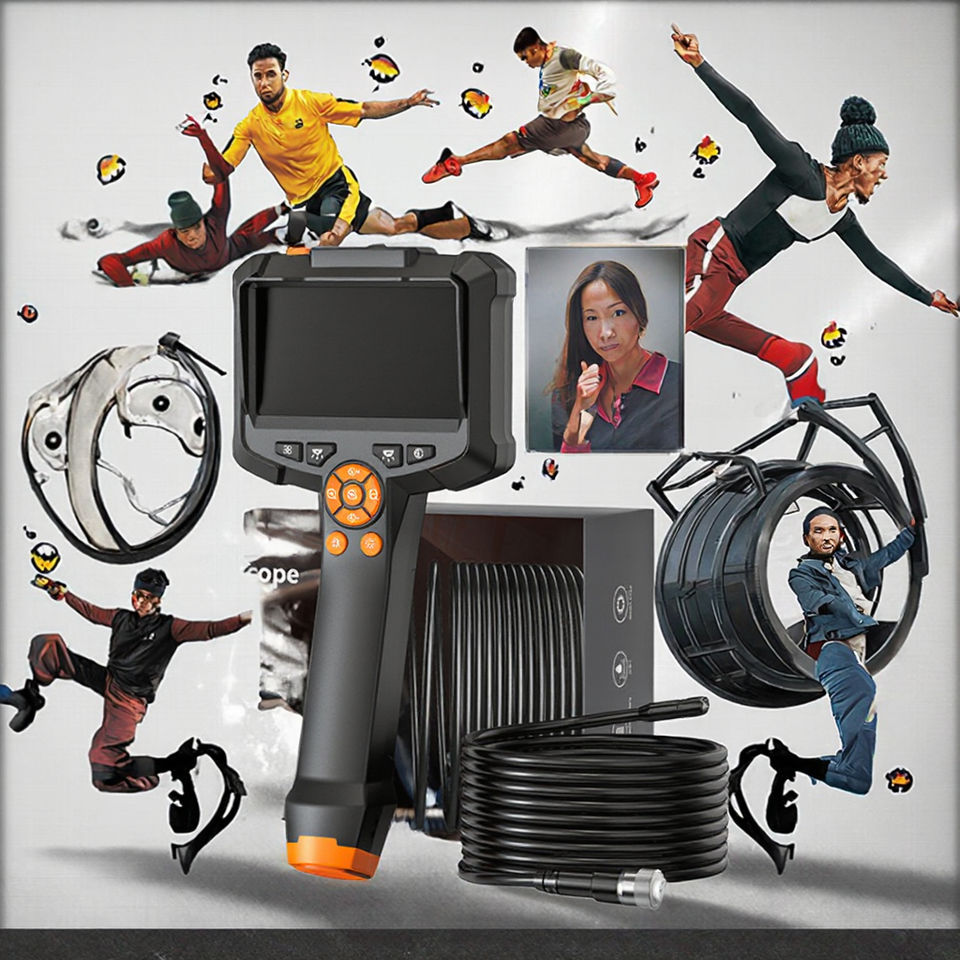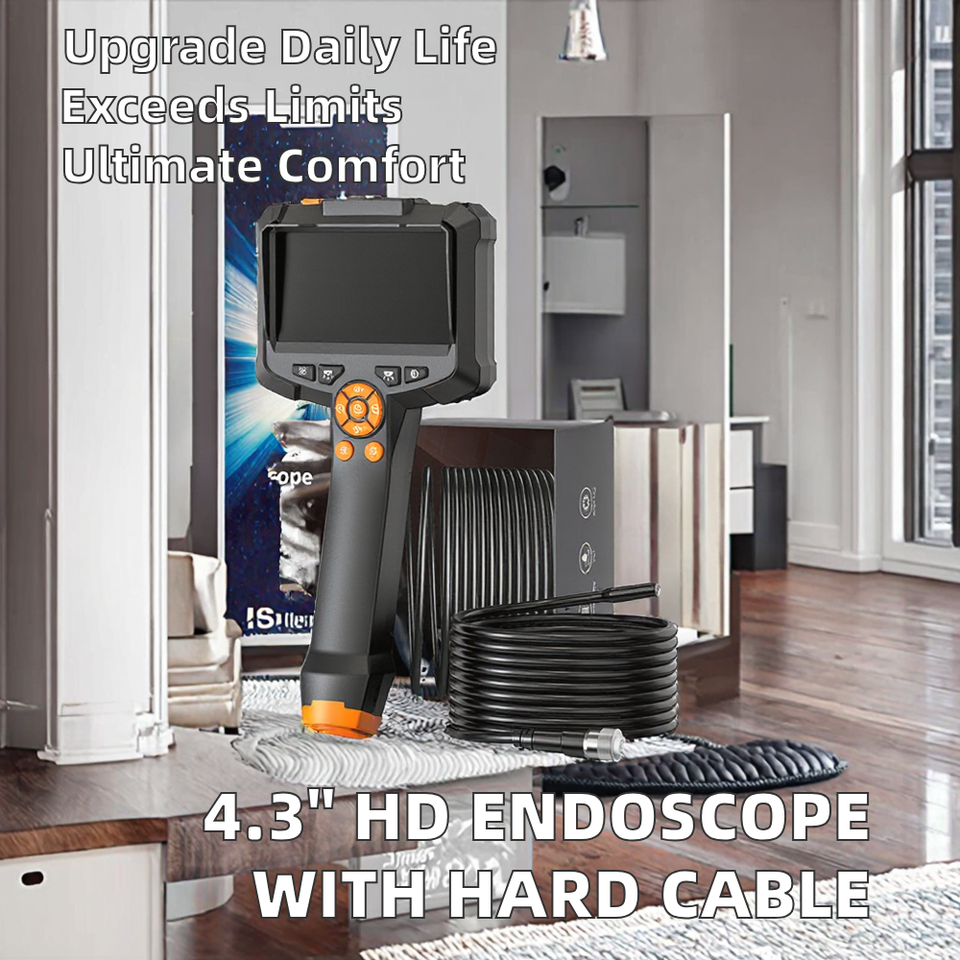กล้องเอ็นโดสโคปอุตสาหกรรมแบบพกพา หน้าจอ IPS ขนาด 4.3 นิ้ว ความละเอียด 1080P CMOS พร้อมสายเคเบิลแข็ง 1 เมตร สำหรับตรวจสอบรถยนต์และท่อ สภาพใหม่จากโรงงาน