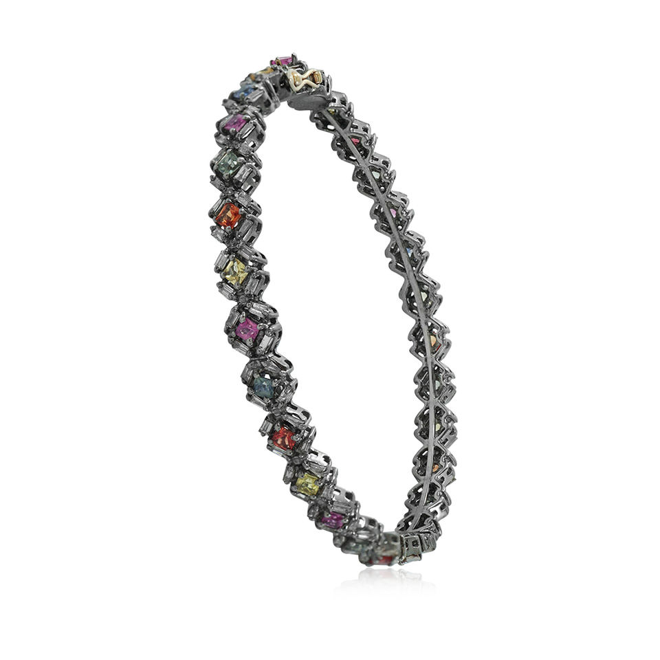 โรงงานใหม่ Baguette เพชร925สร้อยข้อมือเงินสเตอร์ลิงสร้างสรรค์การออกแบบหลายไพลินพลอยกำไล