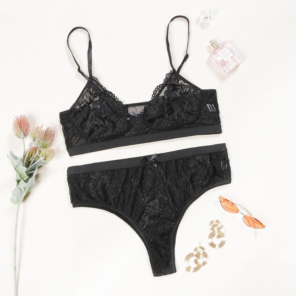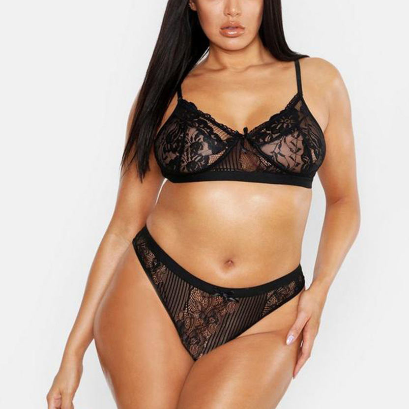 ชุดชั้นในเซ็กซี่แบบใหม่ 2 ชิ้น ไซส์ใหญ่ ผ้าซีทรู พร้อมกางเกงใน ผู้หญิง ชุดชั้นในลูกไม้สีดำสุดเซ็กซี่