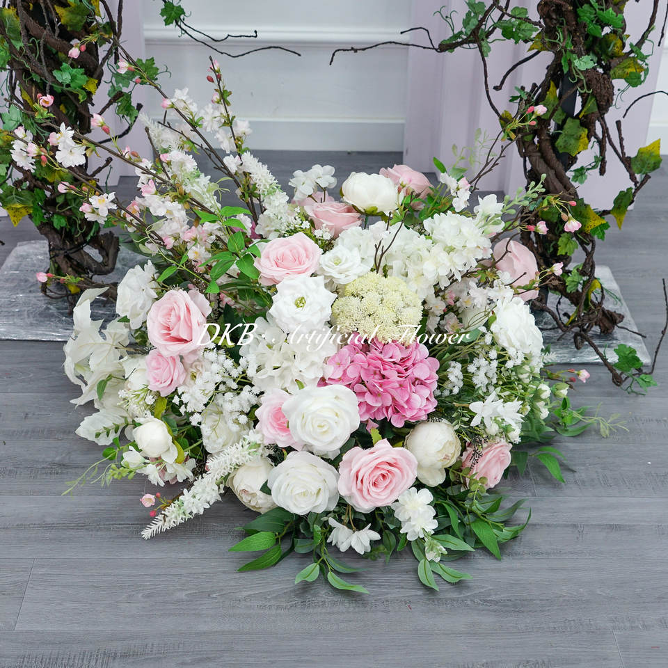 ดอกโบตั๋นดอกกุหลาบสีชมพูและสีขาวลูกบอลดอกไม้ประดิษฐ์ขนาด60ซม. สำหรับจัดงานแต่งงานดีไซน์ใหม่จากโรงงาน