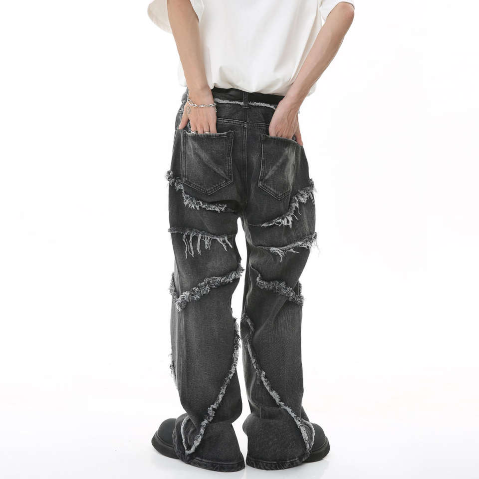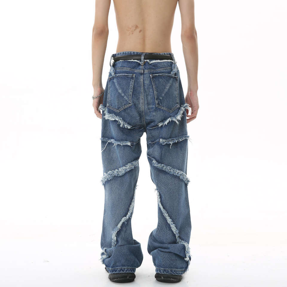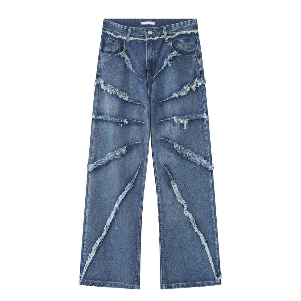 กางเกงยีนส์ทรงแบ็กกี้สไตล์วินเทจ ลุคใหม่จากโรงงาน ผ้าเดนิมคุณภาพสูง 100% ผ้าฝ้าย ล้างสีแบบวินเทจ ขอบดิบ สำหรับผู้ชาย