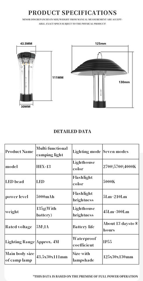 Factory New HEX-13 mini led light Portable Camping Lamp IP55 Rated LG Lithium Battery Dimmable mood strobe light Customization