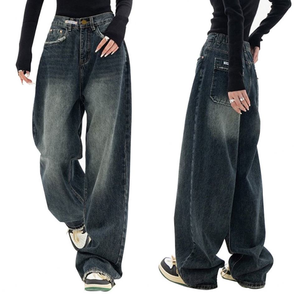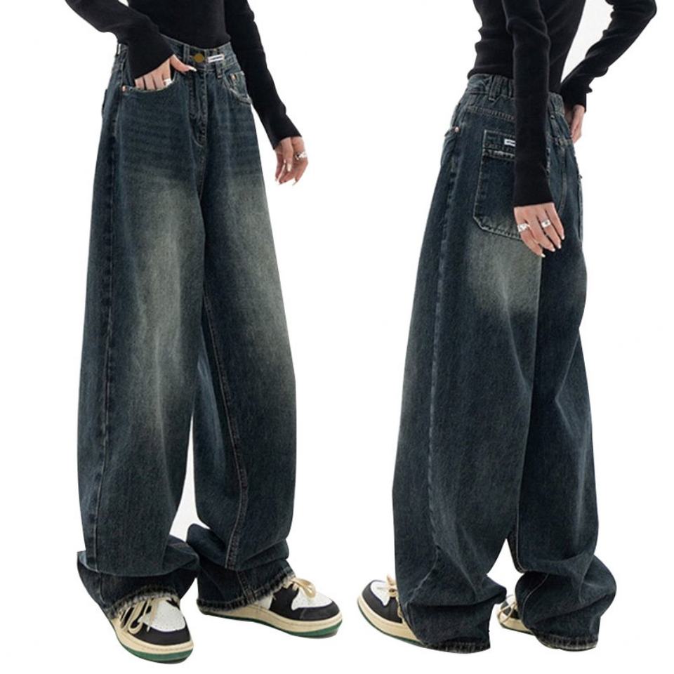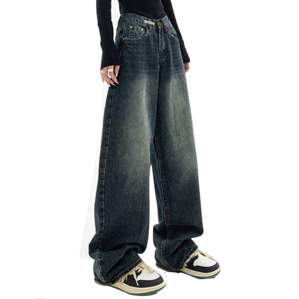 กางเกงยีนส์ทรงบอยเฟรนด์เอวสูงแบบใหม่จากโรงงาน แต่งขอบขาดๆ สไตล์วินเทจ สีเข้ม คุณภาพสูง ผลิตตามแบบ OEM สำหรับผู้หญิง ทรงหลวม ติดกระดุม