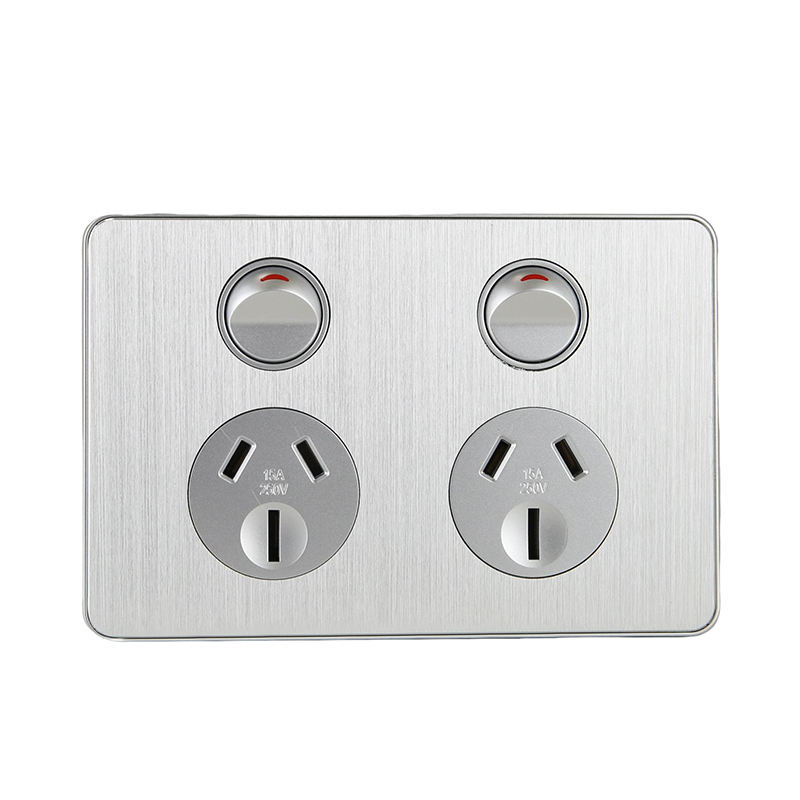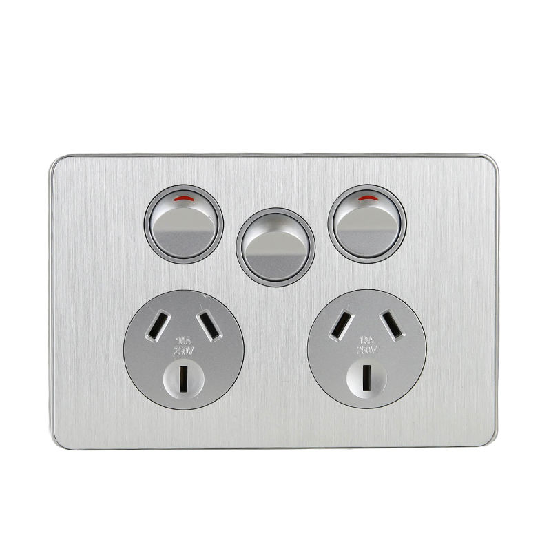 พาวเวอร์พอยท์ส10A คู่แนวนอนมาตรฐานออสเตรเลียพร้อม USB แปรงวัสดุอลูมิเนียม A + C