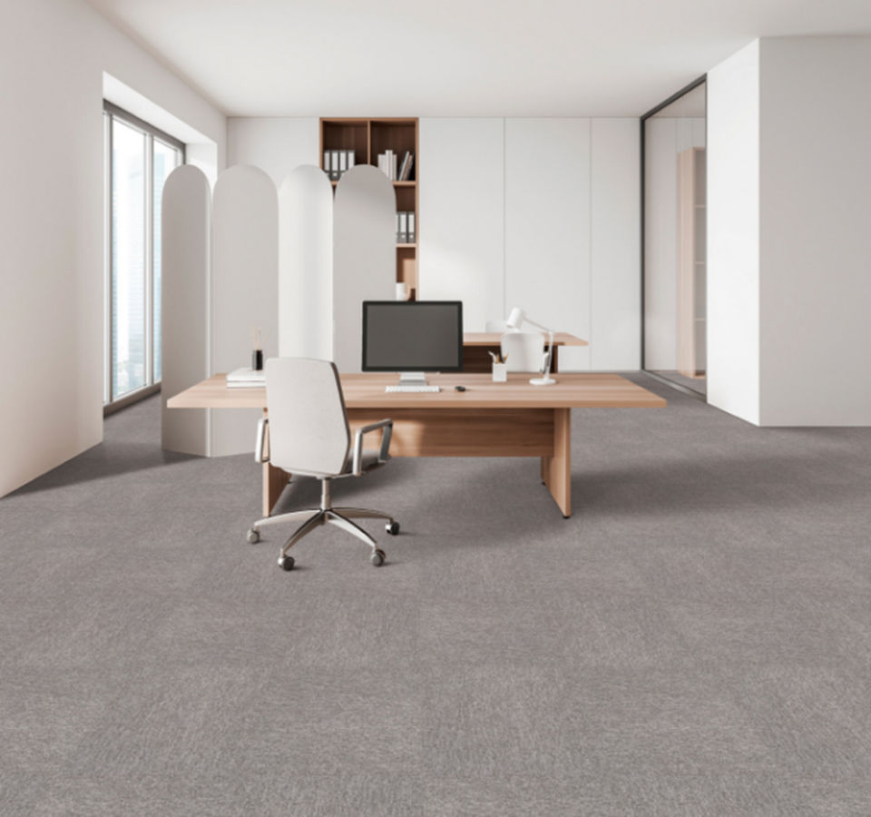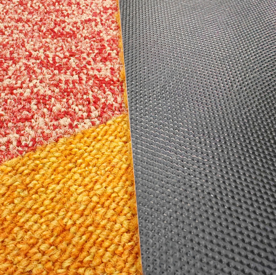 กระเบื้องพรมสำนักงานไนลอน PET ขนาด 500 มม. x 500 มม. ลายทางทันสมัย ขนแบบ Loop Pile ฐาน PVC กันลื่น 50x50