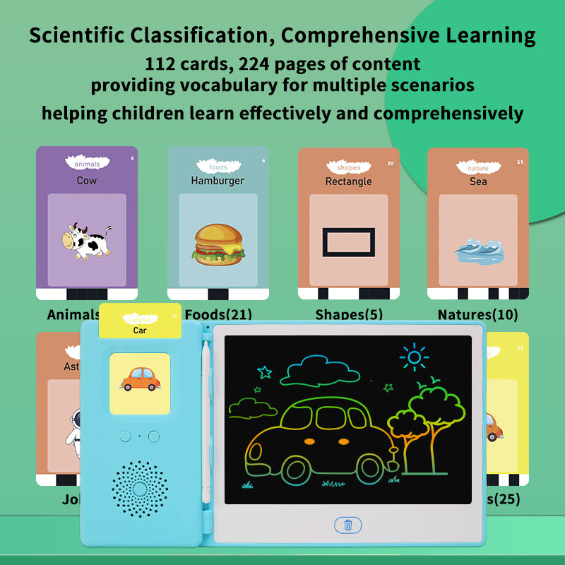 โรงงานOEM 224 คําพูดคุยเครื่องแฟลชการ์ดพร้อมแท็บเล็ตเขียนLCDกระดานวาดภาพดิจิตอลของเล่นเพื่อการศึกษาของขวัญวันเกิด