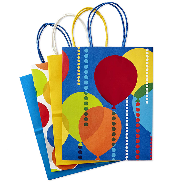 ถุงกระดาษคราฟท์รีไซเคิลพิมพ์ลายสีสันสดใสโลโก้ที่กำหนดเองถุงช้อปปิ้งเสื้อผ้าชุดชั้นใน