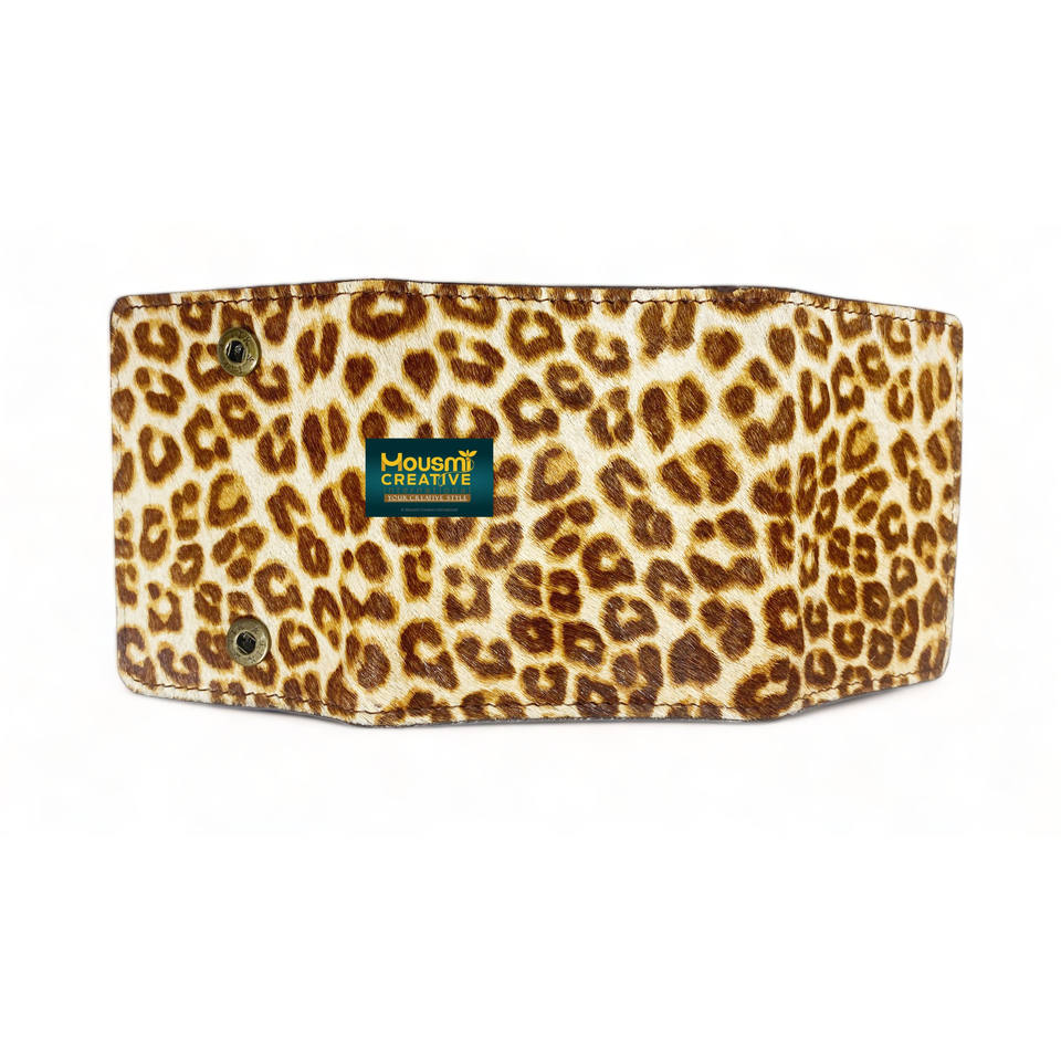 กระเป๋าเงินสามทบสำหรับผู้ชายผดผมผิวลายเสือดาวมีกระเป๋า