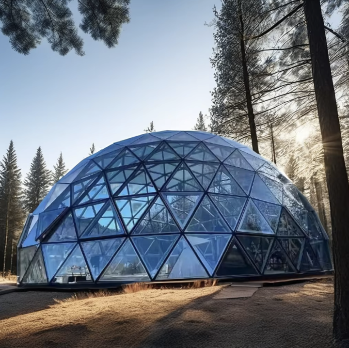 เต็นท์โดมแก้วสำหรับตั้งแคมป์ geodesic รีสอร์ทพิมพ์โลโก้ OEM สำหรับประสบการณ์การใช้ชีวิตที่ไม่เหมือนใคร