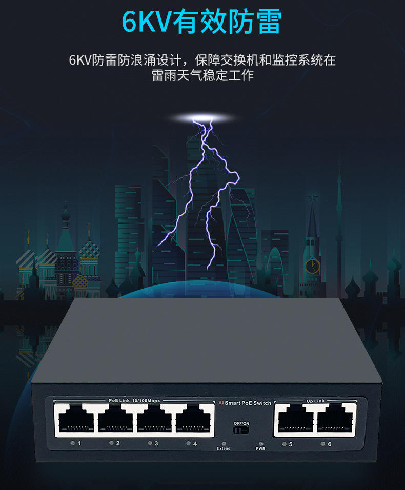 สวิตช์ Poe อัจฉริยะ AI แบบ OEM ODM จากโรงงาน 4 พอร์ต Poe สวิตช์อีเธอร์เน็ต สวิตช์เน็ตเวิร์ค 2 พอร์ต 100M Uplink สวิตช์ Poe อุตสาหกรรม