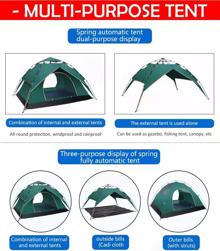 เต็นท์โรงงาน OEM แบบหนึ่งห้องนอน กันน้ำทุกฤดู ขนาด 1500-2000 มม. สำหรับ 3-4 คน กางอัตโนมัติ ใช้งานกลางแจ้ง ผ้าโพลีเอสเตอร์สองชั้น